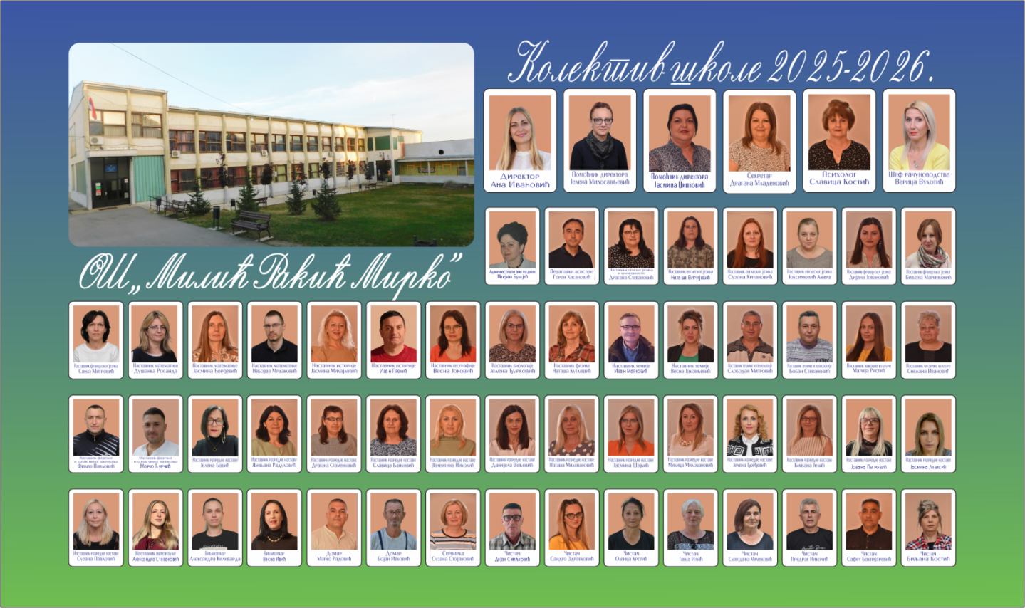 У нашој школи ученици, наставници и родитељи живе и раде као једна породица, ослањајући се једни на друге и градећи окружење у коме свако дете може да расте, учи и сања. Поносни смо на успехе наших ученика на такмичењима и пројектима, али још више на вредности које заједно градимо – међусобно поштовање, радозналост и љубав према знању.